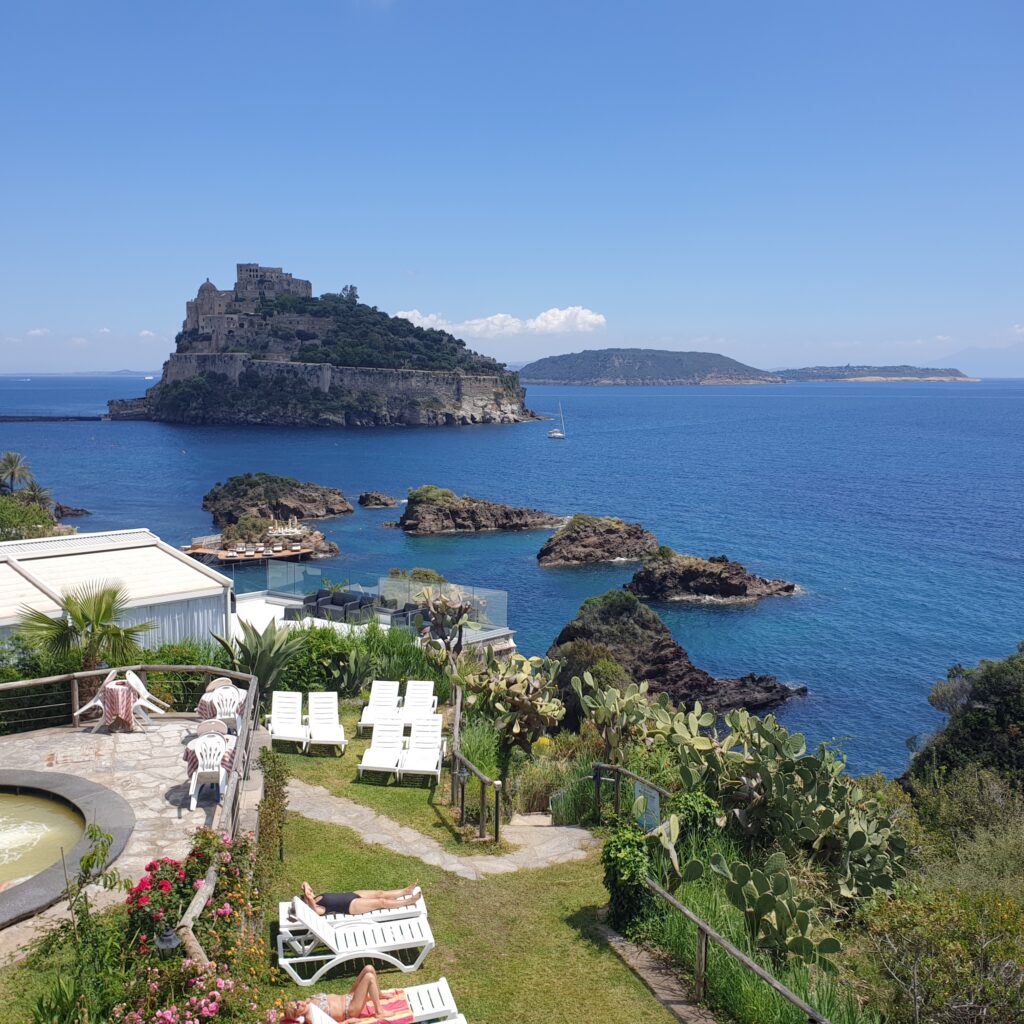 Das Olympus auf Ischia liegt direkt am Maronti-Strand und schenkt uns nicht nur die wohltuende Kraft des Thermalwassers, sondern auch einen unvergleichlichen Blick auf das Meer.